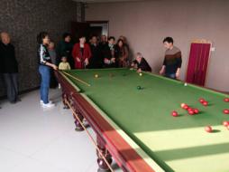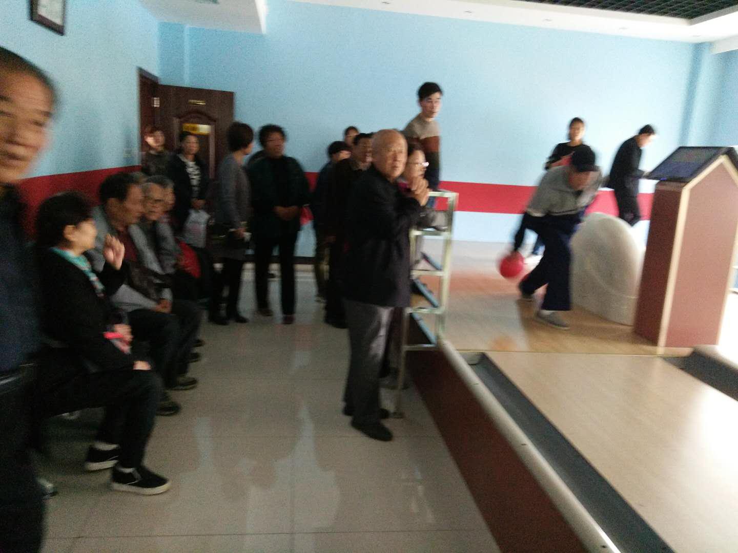 活动现场,房管局老干科代表局领导向老干部送上了节日的祝福和慰问,组织老干部们合影留念后,参观了离休干部活动的场所,离休干部活动的场所共有11个活动室,有乒乓球室、健身室、保龄球室、棋牌室、台球室、阅文室、理疗室、视听室、休息室、书画室、高尔夫球室。室内设有高科技运动、健身和理疗器械,使老干部在运动、健身和休息的同时亲身体验现代高科技的生活方式。在参观离休干部活动的场所后,又组织老干部根据自己的身体状况和爱好选择活动室进行了活动。有的老干部在乒乓球室的自动发球机案上练起了对打,有的老干部在保龄球室排着队打保龄球,有的老干部在视听室歌唱自己喜欢的红色歌曲,有的老干部在健身室锻炼身体,老干部们脸上都绽放着幸福的笑容。活动现场欢歌笑语,老干部纷纷拿出手机拍下活动的精彩瞬间。