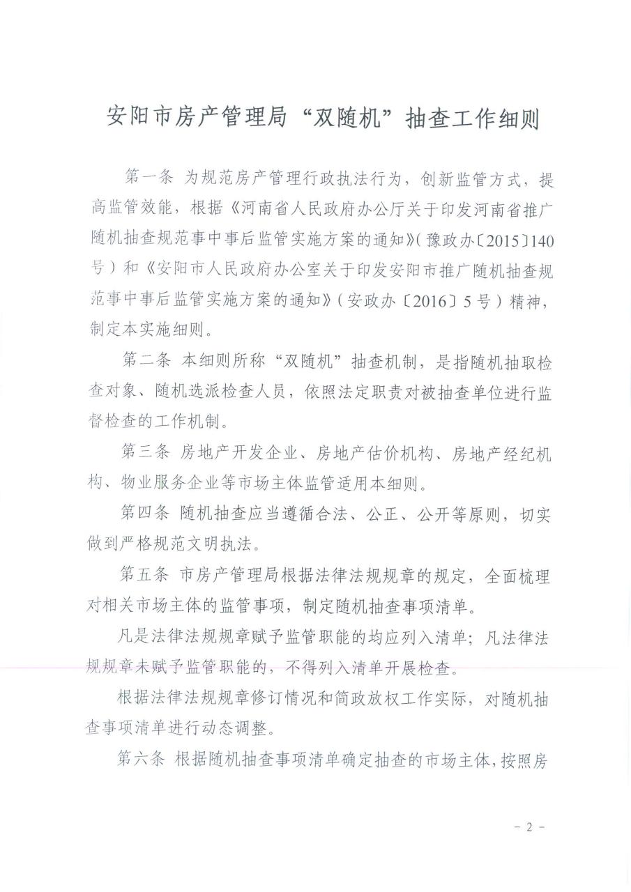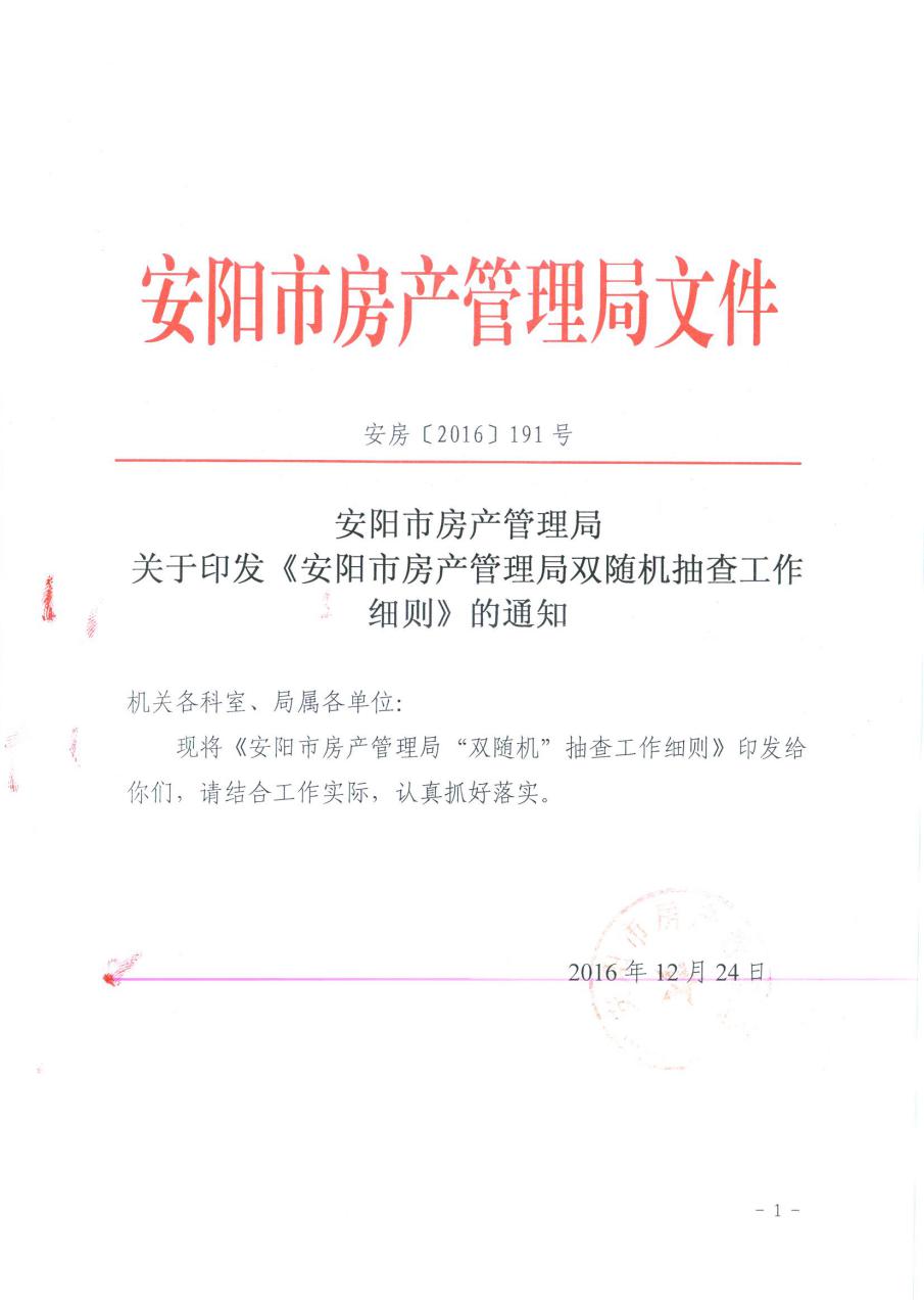 安房〔2016〕191号安阳市房管局关于印发《bet365365游戏双随机抽查工作细则》的通知